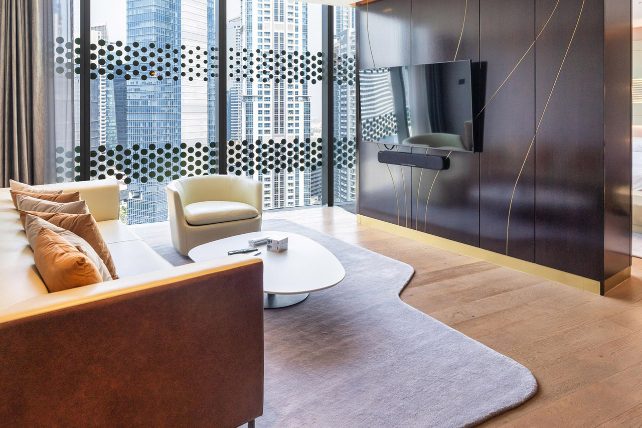 This sophisticated 1-bedroom, 2-bathroom apartment spans approximately 1,041 sq ft., offering refined urban living in a prime Business Bay location.