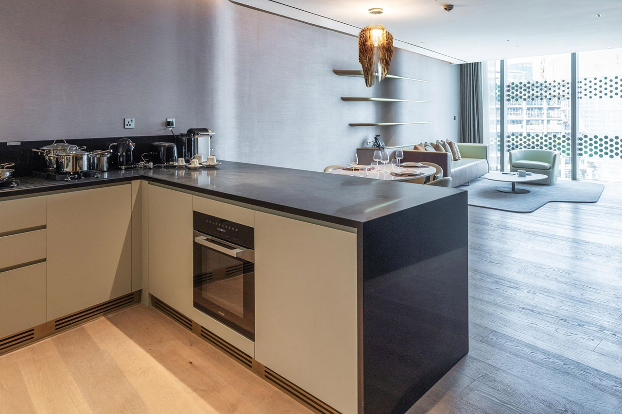 The bright, open-plan layout features a fully equipped modern kitchen flowing seamlessly into a spacious living and dining area bathed in natural light. The master suite boasts an en suite bathroom, while the second bathroom provides convenience for guests. Residents enjoy premium amenities, including a swimming pool, shared spa and gym, concierge services, and meticulously designed communal spaces.